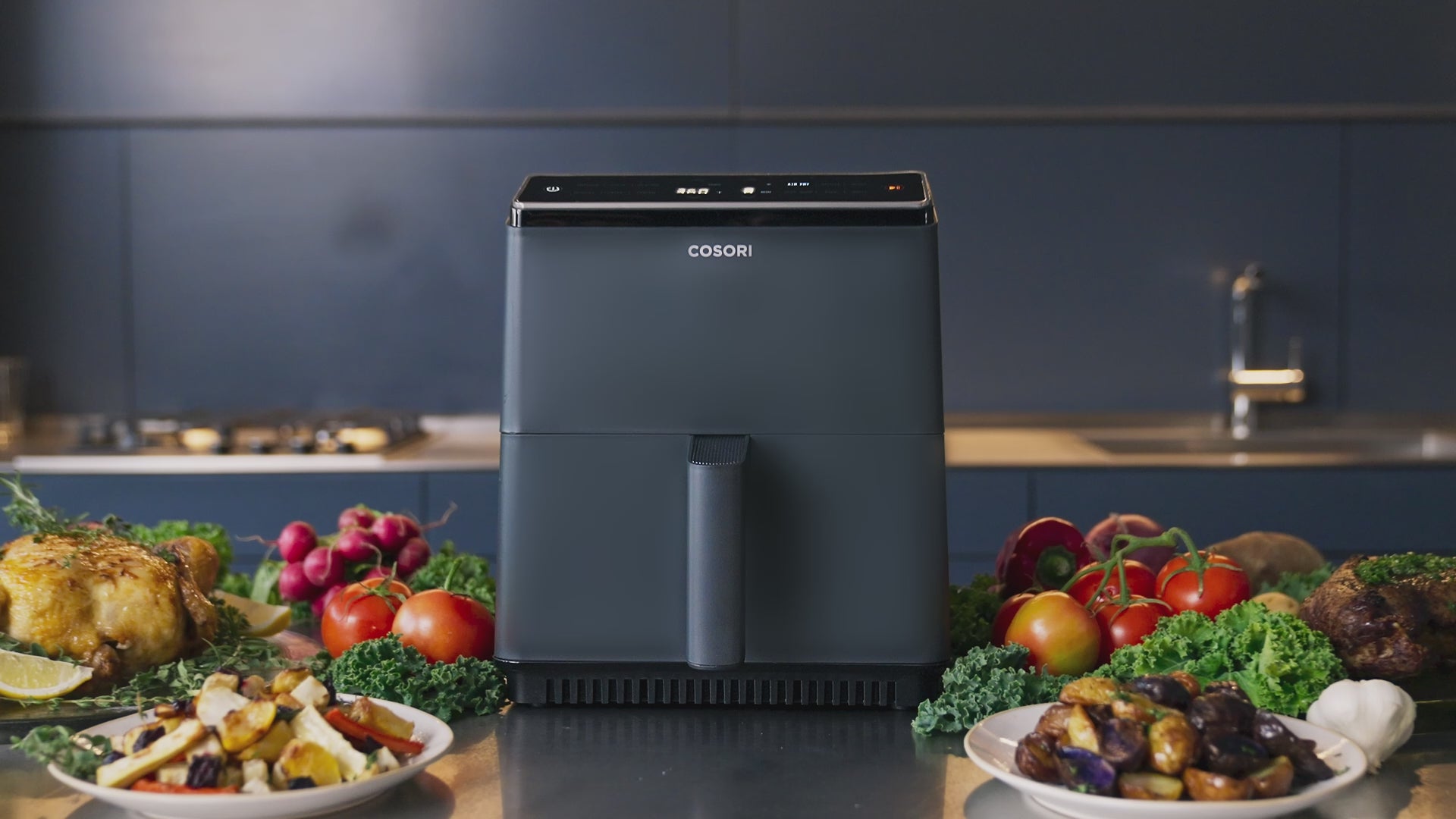 Låt airfryern göra jobbet åt dig med en-knapps-funktioner som Airfry, Baka, Grilla, Stek, Värm upp, Håll varm, Kyckling, Biff, Skaldjur, Grönsaker, Pommes frites och Färdigmat. Du kan även skräddarsy dina egna funktioner med önskad tid och temperatur.
